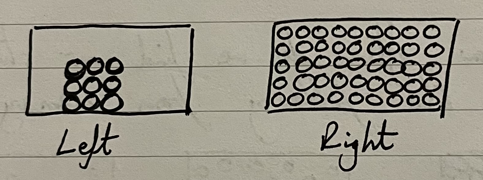 Once students are happy with these ideas, a class discussion about gases can be followed by students predicting the particle diagram for gases. They could copy and complete the diagram below, or perhaps mini-whiteboards would be best to show you what all students are mentally picturing.